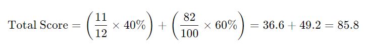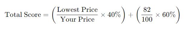 If you score 82/100 in the technical evaluation and have the second-lowest price, your final score is calculated as follows: